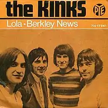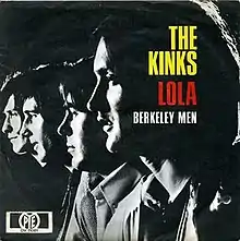 "Lola" was released as a single in 1970.[20] In the UK, the B-side to the single was The Kinks Are the Village Green Preservation Society outtake "Berkeley Mews"[21] while the Dave Davies-penned "Mindless Child of Motherhood" was used in the US.[20] It became an unexpected chart smash for the Kinks, reaching number two in Britain[6] and number nine in the United States.[7] The single also saw success worldwide, reaching the top of the charts in Ireland, New Zealand, and South Africa, as well as the top 5 in Germany, Austria, Belgium, Switzerland and it reached number six in Australia. The success of the single had important ramifications for the band's career at a critical time, allowing them to negotiate a new contract with RCA Records, construct their own London Studio, and assume more creative and managerial control. In a 1970 interview, Dave Davies stated that, if "Lola" had been a failure, the band would have "gone on making records for another year or so and then drifted apart".[22]