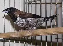 The black-faced munia (Lonchura molucca) is a species of estrildid finch found in Indonesia and East Timor. It occurs in a wide range of habitats including artificial landscapes (e.g. parks and gardens), forest, grassland and savannah. It was first described by the Swedish naturalist Carl Linnaeus in the twelfth edition of his Systema Naturae in 1766. The IUCN has evaluated the status of this bird as being of least concern.