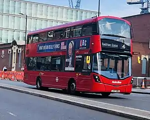 ![]() A Metroline Volvo B5LH on route 4 along Queen Victoria Street in 2022. | |