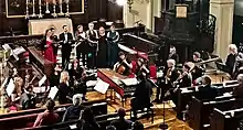 In 2017 LEO performed Handel’s Water Music and a new world-premiere performance of River written by a previous winner of BBC Young Composer of the Year, Grace-Evangeline Mason. This was commissioned by the BBC and performed live by London Early Opera for BBC Radio 4 on the Eras`mus Boat on the River Thames celebrating the 300th Anniversary of Handel's Water Music.[19][20] In 2022 LEO launched their recording of Handel’s Caio Fabbricio with a world premiere first performance in modern times at St George’s Church, Hanover Square, edited and directed by Bridget Cunningham.[21] LEO have also given several performances on BBC Radio 3.[22][23]