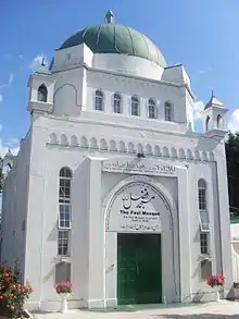 The Ahmadiyya Community began in 1889, under its founder Mirza Ghulam Ahmad. Ahmad began the community upon having visions of the prophet Muhammad and thus proclaimed himself as a reformer of Islam.[17] In 1920, after missionary work in London, the Ahmadiyya Community and its leader at the time, Hazrat Khalifa Masih II, decided London was a prime location for Islam to be represented. The Ahmadiyya women of India raised the money for which a one and one-quarter acre orchard land was bought for the construction of the Fazl Mosque.[18]