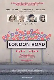 London Road is a 2015 British musical mystery crime drama film directed by Rufus Norris and written by Adam Cork and Alecky Blythe based on their National Theatre musical of the same name, which in turn is based on the interviews about the Steve Wright killings. The film stars Olivia Colman, Anita Dobson and Tom Hardy.