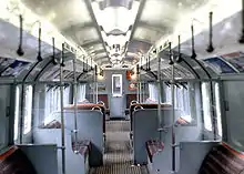 The twelve aluminium-bodied motor cars were ordered from Cravens in 1958, and each was equipped with four traction motors, instead of the two which previous stock had used. They were controlled by a Pneumatic Camshaft Motor (PCM) controller, where an air-operated camshaft controlled the switching of the motors, which was itself governed by an accelerating relay.[6] This system had proved reliable in the control of two motors. In order for it to control four, without a major re-design, pairs of motors were wired together in series, and the controller switched between all four motors operating in series, and the two pairs operating in parallel. In order to protect against wheel-spin, the controller automatically reset if one motor of a pair began to run faster than the other. Whereas previous bogies had been asymmetric, to ensure that more weight was carried by the axle driven by the motor, the pivot was central as every axle carried a motor. One further innovation was that the fully automatic couplers at the outer ends of the trains were not "handed". Previously, trains were designated with 'A' and 'D' ends, and could only be coupled together by joining an 'A' end of one train to a 'D' end of another. This could cause operational problems, particularly on a line such as the Central, where operating a train right round the Hainualt loop resulted in it facing the wrong way. The 1960 stock avoided this problem by duplicating most of the connections in the automatic coupler, so that trains could be joined either way round. The cars also included a flat floor for the first time, rather than having a raised section over the motor bogies (previous stock had flat floors at the centre section only, with a rising transition in the two double doorways to a steeply curved floor 4 inches higher at either end over the bogies).