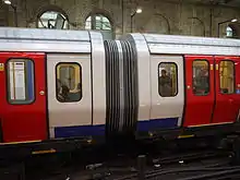 The air-conditioning system, the first on London Underground trains, is supplied by Mitsubishi and has two circuits so that if one fails there is still 50% capacity.[16] Open gangways from car to car (similar to London Overground's Class 378) allow passengers to move from crowded cars to ones with more room, provide extra room for standing, and create a sense of security. CCTV enables the driver to see into every car, while track-to-train video links give the driver a view of the train exterior before leaving a station.[16] There is a fold-out set of steps in each driver's cab to allow fast evacuation in an emergency.[18]