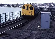 Overhaul of the electrical and braking systems was done at Acton Works, which involved transferring the cars from Micheldever back to London Transport. This included conversion to work with a three-rail system, rather than the standard London Transport four-rail system. The number of cars to be shipped to the Isle of Wight was reduced from 46 to 43 because of the cost of this work. After overhaul, the cars were transferred to Stewarts Lane, where they were repainted in British Rail blue, and were then taken to the Isle of Wight.[40] They were loaded onto a road vehicle at Fratton belonging to the haulage company Pickfords, and crossed to the island on the Portsmouth to Fishbourne ferry. Care was needed to ensure that the weather and tides were suitable, and motor cars had to be transferred on special sailings, rather than regular crossings, because of the difficulty of unloading a vehicle of this weight without damaging the ship's unloading ramp.[41]