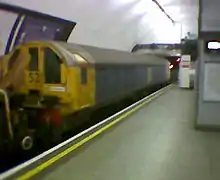 All battery locomotives are fitted with tripcocks which are operated by trackside equipment if the train passes a signal at danger. Eighteen (L15–L21 and L44–L54) are also fitted with Central line Automatic Train Protection (ATP). When they were built, locomotives L25 to L32 were fitted with Automatic Train Operation (ATO) equipment, which allowed them to work on the Victoria line. The tripcock could be isolated, and a trip valve performed a similar function, except that it was operated by the ATO controller. A special setting was provided that allowed the vehicles to move if they were not receiving safety track signals, but the maximum speed in these circumstances was limited to 10 mph (16 km/h). By the mid-1980s, this equipment had ceased to be used, as works trains were only run on the Victoria line when engineers had possession of the whole line.[11] Subsequently, some locomotives (L27–L32) have been fitted with a new type of Victoria line ATP equipment which was designed by Metronet on behalf of Transplant, the operator of the fleet. This system was installed during 2007 at Ruislip Depot. It is compatible with the new Distance-to-Go Radio (DTG-R) ATP system which has been implemented on the Victoria line by Westinghouse Rail Systems.[18]