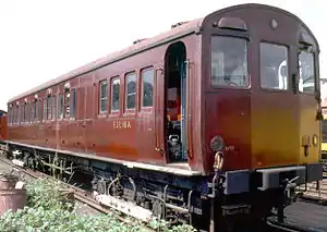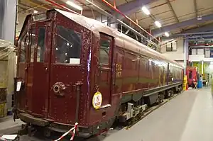 Locomotive ESL103 was scrapped in 1954 as the result of collision damage sustained in 1948. It was deemed to be beyond economical repair.[4] Gradually, de-icing gear was fitted to service trains, beginning with the A stock on the Metropolitan line, and the need for separate sleet locomotives decreased. ESL100 and ESL112 were modified in 1972, so that they could be used to remove leaves from the running rails. Experiments were made to find a suitable fluid which would assist adhesion, but none was found. The two locomotives continued to be used for brushing leaves from the rails. The vehicles were last used in August 1985.[5] ESL107 was the last to be withdrawn, and was preserved by the London Transport Museum.