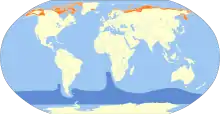 This species breeds in the high Arctic of Eurasia and North America, with major populations in Russia, Alaska and Canada and smaller populations around the rest of the Arctic. It is a migrant, wintering in the south Atlantic and Pacific. Passage juvenile birds sometimes hunt small prey in ploughed fields or golf-courses, and are typically quite fearless of humans.