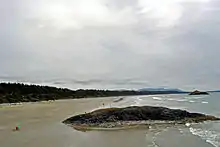 Long Beach is the largest and longest beach in the Pacific Rim National Park Reserve on the west coast of Vancouver Island, British Columbia, Canada.[1] It is on Wickaninnish Bay between Tofino (NW) and Ucluelet (SE) and is adjoined by campgrounds and picnic areas. The Tofino-Ucluelet highway parallels the entirety of the beach. The beach's consistent surf, exposed to the open Pacific Ocean, established it as one of the earliest and most popular surfing locations in British Columbia.