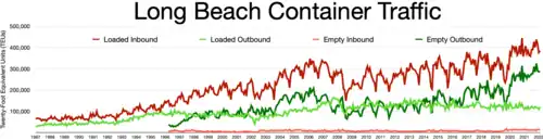 - "Port of Long Beach - Yearly container trade in TEUs". Archived from the original on December 12, 2018. Retrieved October 5, 2014.