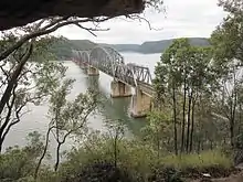 The Main North railway line from Sydney passes through a tunnel on the eastern end of the island, which is joined to Brooklyn by a railway causeway across Sandbrook Inlet, and to Cogra Point on the northern shore of the Hawkesbury River by the second Hawkesbury River Railway Bridge. The spans for this second bridge, built during the 1940s when it became necessary to replace the first bridge, were assembled on the northeastern side of Long Island, immediately to the west of the current bridge. The remains of the docks and crane mountings are still present on the hillside, and along the water's edge.