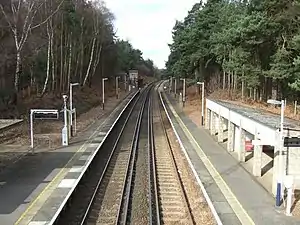 To the north is Wentworth Golf Course, lacking any rights of way (accessways) between it and the station.[2] The station is thus adjacent to parts of the Wentworth Estate and, beyond the M3 motorway, Chobham Common.