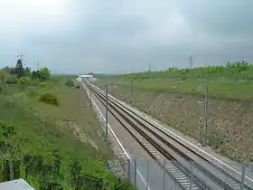 The site of Longfield Halt has been incorporated into the Channel Tunnel Rail Link (CTRL) which runs from London through Kent to the British side of the Channel Tunnel. Works on the CTRL commenced in 1998 with the lifting of the remaining track on the Gravesend Branch and the excavation of a new trackbed.[7] CTRL services followed the alignment of the Gravesend Branch as far as Fawkham Junction where they joined the Chatham Main Line to proceed to Waterloo.[8] CTRL trains ceased using this route in 2007 when trains were diverted to St. Pancras. The line is still occasionally used for empty stock trains.