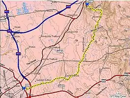 ![]() The Longster Trail, shown as the yellow curve, with endpoints at Helsby and Pipers Ash, shown as blue flags. | |