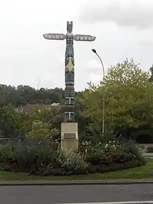 The apartment blocks on the southwestern edge of town, still called "La Cité Canadienne", were home to Royal Canadian Air Force staff and their families in the 1950s and 1960s, when the RCAF had an airbase at nearby Marville. The streets were named after Canadian cities, such as Toronto, Montreal, etc. A traditional First Nations totem pole was erected as a monument to the Canadian presence in Longuyon.