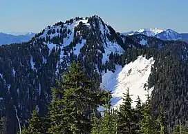 Lookout Mountain is a 5,699-foot (1,737 m)-elevation summit in the North Cascades, in Skagit County of Washington state.[3] It is located 5 miles (8.0 km) east-northeast of the town of Marblemount,and set on land administered by the Mount Baker-Snoqualmie National Forest. The nearest higher neighbor is Teebone Ridge, 2 miles (3.2 km) to the east-northeast.[1] At the top of Lookout Mountain is a historic US Forest Service lookout station that was built in 1962, which replaced a 1929 structure. Views from the top include Sauk Mountain to the west, with Eldorado Peak and the Picket Range in North Cascades National Park to the east and north respectively. The peak is just one mile outside the park boundary. Access is via a 4.7-mile (7.6 km) trail which gains over 4,400 feet (1,300 m) of elevation. Precipitation runoff from Lookout Mountain drains into tributaries of the Skagit River.