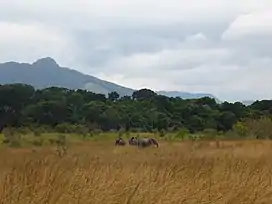 Because of global climate change, the dense forest ecosystem is expanding into the savanna ecosystem in the north, leading to the loss of habitat diversity in the park.[10] As a result, annual controlled burns of the savanna have been conducted in the park to reduce the encroachment of the forest vegetation and to provide the required vegetation for the diet of the forest buffalo.[11]