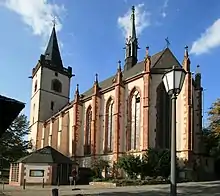 - The Catholic Pfarrkirche St. Martin (Saint Martin's Parish Church) was completed in the fourteenth century. The Gothic building was built over the remains of a still partly preserved Late Romanesque basilica. Its centrepiece is the high altar by the master Hans from Worms, installed in 1483. As the biggest, and perhaps first-carved altar, originally conceived as monochrome, it is of outstanding value for art history.[6] The church therefore is secured, but open for visitors between Easter and October on Saturdays between 14:00 and 17:00 and on Sundays between 11:00 and 17:00.