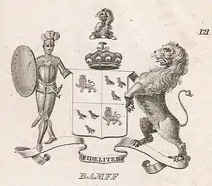 Lord Banff is an extinct or dormant title in the Peerage of Scotland. It was created on 31 August 1642 for Sir George Ogilvy, 1st Baronet. He had already been created a Baronet, of Forglen in the County of Banff, in the baronetage of Nova Scotia on 30 July 1627. He was succeeded by his son, the second Lord. He was a cavalier and member of the Parliament of Scotland. On his death the title passed to his elder son, the third Lord. He was a supporter of the Union between England and Scotland. He was succeeded by his son, the fourth Lord. Two of his sons, the fifth and sixth Lords, succeeded in the title. The latter was a captain in the Royal Navy. He was unmarried and on his early death in 1746 the line of the third Lord failed. The late Lord Banff was succeeded by his second cousin Sir Alexander Ogilvy, 2nd Baronet, who became the seventh Lord. He was the grandson of the Hon. Alexander Ogilvy, younger son of the second Lord, who had been created a baronet, of Forglen in the County of Banff, in the Baronetage of Nova Scotia in 1701. On the death of his unmarried eldest surviving son, the eighth Lord, in 1803, the lordship and two baronetcies became either extinct or dormant. The Forglen estate passed to the late Lord Banff's sister the Hon. Jane, wife of Sir George Abercromby, 4th Baronet (see Abercromby baronets).