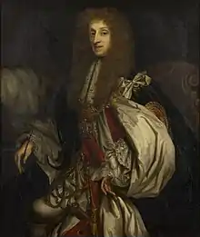 Thomas Osborne, 1st Duke of Leeds, KG (20 February 1632 – 26 July 1712),[1] was a prominent English politician. Under King Charles II (and known at the time as Lord Danby), he was the leading figure in the government for around five years in the mid-1670s. He fell out of favour due to corruption and other scandals, and was impeached and eventually imprisoned in the Tower of London for five years until the accession of James II of England in 1685. In 1688 he was one of the Immortal Seven group that invited William III, Prince of Orange to depose James II as monarch during the Glorious Revolution. He was again the leading figure in government, known at the time as the Marquess of Carmarthen, for a few years in the early 1690s.[2]