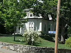 The Lorenzo D. Hawkins House is a historic house at 1 Cedar Street in Stoneham, Massachusetts. The property consists of a house and carriage house, both built c. 1870, that are among Stoneham's finest Second Empire buildings. The house is a two-story wood-frame structure with irregular massing. It has the classic mansard roof, an ornately decorated entry porch, heavily bracketed cornice, and round-arch windows in its dormers and front bay. The carriage house features a polychrome mansard roof.[2]
