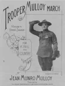 In the 1910s, Mulloy worked hard to promote stronger ties between Britain and Canada, becoming an accomplished speaker and debater. When he returned to Canada, he was appointed a professor of Military History and Strategy at the Royal Military College of Canada.[11] On March 4, 1911, Lorne Mulloy married Jean Munro, a well-known soprano who had studied at the Boston Conservatory of Music. Jean Munro would be the author of various patriotic marches and tunes during the First World War; including the Trooper Mulloy March and Johnnie Canuck's the Boy.