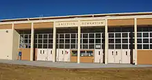 In 2010, construction began on the high school to replace aging buildings at the center of the campus. A-D wings were torn down to make room for a new three-story building.[71] The new main building was completed in late 2011 with classes beginning in January 2012. This is the most recent in a series of capital renovations at the high school including the addition of a new science wing and the newly remodeled R-Wing (formerly the cafeteria).[72] In 2010 Los Alamos Public Schools were commended by Energy Education for their efforts in promoting energy efficiency. LA Schools achieved over a million dollars in energy cost savings during a 56-month period.[73]