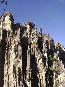 The Los Estoraques Unique Natural Area (Spanish: Área Natural Única Los Estoraques) is one of the smaller national parks, covering only 6 km2 (2.3 sq mi), located in the Cordillera Oriental of Colombia in the Norte de Santander Department. The landscape is shaped by large brownstone pedestals and columns formed by thousands of years of erosion.[1] The area is part of the Catatumbo River basin and elevation range from 1,450 to 1,900 meters above mean sea level. It was declared an Área Natural Única (Unique Natural Area) in 1998.[2]