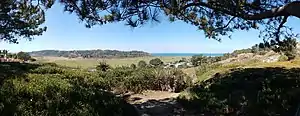 Los Peñasquitos Marsh Natural Preserve and Lagoon is a coastal marsh in San Diego County, California, United States situated at the northern edge of the City of San Diego, forming the natural border with Del Mar, California.[1] This bar-built estuary (a lagoon separated from the ocean by a mouth bar, a typical estuary for California[2]), previously called The Soledad Lagoon, divides a colony of the endangered Pinus torreyana on a narrow coastal strip.[3] Three streams empty into the lagoon: Carroll Creek, Carmel Creek (also known as the Carmel Valley Creek), Los Peñasquitos Creek with a total drainage basin area of 95 square miles.[4]