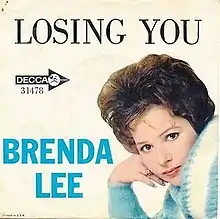 "Losing You" is a song written by Jean Renard and Carl Sigman and performed by Brenda Lee.[1] The song reached #2 on the adult contemporary chart, #6 on the Billboard Hot 100, #10 in the UK, and #13 on the R&B chart in 1963.[2] The song is featured on her 1963 album, ..."Let Me Sing".[3]