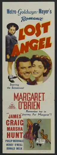 Lost Angel is a 1943 drama film directed by Roy Rowland, starring Margaret O'Brien as a little orphan girl raised to be a genius. James Craig plays a reporter who shows her the world outside the Institute of Child Psychology.