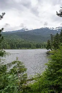 Lost Lake is a lake located in Whistler, British Columbia, Canada. The area around it, Lost Lake Park, is part of the municipal park system's cross-country skiing trails and, until hotel development overshadowed views of the park's swimming docks, was Whistler's long-time nude sunbathing beach.[1] It has multiple public docks, which can be accessed by swimming in warmer months.