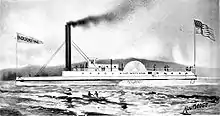 The vessel was 160 ft (49 m) long, 24 ft (7 m) on the beam, with 5.7 ft (2 m) depth of hold. Her paddlewheels were 18 ft (5 m) in diameter. She had a single cylinder walking-beam steam engine, with a 17" bore and an 84" stroke.[3] The engine generated 140 horsepower, which could drive the vessel at a rate of about 12 miles per hour.[2] The machinery was brought out to the west coast from New Orleans and was originally intended to power a steamboat on the Sacramento River.
