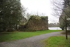 The ruins of the Mac Raghnaill's Castle are located close to the lake and some 500 metres from the existing Lough Rynn Castle. The historian, Fiona Slevin, describes the structure of the Mac Raghnaill castle as "fairly standard for the time, but it did have a few unusual - and clever - features. Although a square shape, the castle had rounded corners that made it more impervious to artillery attacks and it had a straight stairway carved into the hollow of a wall, rather than the more usual spiral stair in one corner."[1][8]