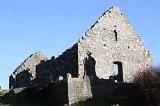 The North Church is 66.5 ft by 30 ft, the gables and most of the side walls are standing and a doorway in the west end has a narrow window above it.[6]