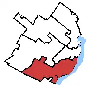 The district, in the Quebec region of Capitale-Nationale, consists of the southern part of Quebec City, and is largely coextensive with the borough of Sainte-Foy–Sillery–Cap-Rouge. It is based mostly on the former city of Sainte-Foy, which was merged into the "megacity" of Quebec City in 2002.