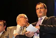 In the 2009 municipal by-election, he again led the FN list but lost his municipal seat in the first round (9.42%, 3,382 votes).[7] Since June 2009, the FN is not represented in the municipal council of Perpignan. In order to take part in the run-off, a municipal list must cross the minimal threshold of 10% of the valid votes.