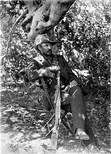 In 1899, Louis Botha fought in the Second Boer War, initially joining the Krugersdorp Commando,[2] continuing to fight under Lucas Meyer in Northern Natal, and later as a general commanding and leading Boer forces impressively at Colenso and Spion Kop. On the death of P. J. Joubert, he was made commander-in-chief of the Transvaal Boers, where he demonstrated his abilities again at Belfast-Dalmanutha. After one of the battles at the Tugela River, Botha granted a twenty-four-hour armistice to General Buller to enable him to bury his dead.[3]