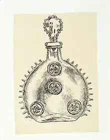 The concept for the decanter of Louis XIII originated in 1850, when Paul-Emile Rémy Martin came across a metal flask originally recovered from the site of the Battle of Jarnac (1569). He purchased the metal flask and registered the rights for its reproduction. In 1874, in honour of the House’s 150th anniversary, he designed a glass replica of the flask to use as the vessel for his best cognac.[3] Today, each crystal decanter is handmade by French crystal manufacturers: Baccarat, Saint-Louis, and Cristallerie de Sèvres.[1][6]