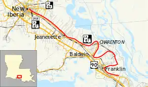 The entire highway is in New Iberia, Iberia Parish.