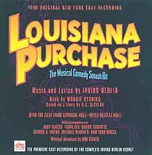 Louisiana Purchase is a musical with music and lyrics by Irving Berlin and book by Morrie Ryskind based on a story by B. G. DeSylva. Set in New Orleans, the musical lightly satirises Louisiana Governor Huey Long and his control over Louisiana politics.[1] An honest U.S. senator travels to Louisiana to investigate corruption in the Louisiana Purchase Company; the company's lawyer attempts to divert him via the attentions of two beautiful women, but the senator maintains his integrity and ends up marrying one of them. In 1941 it was adapted for the film Louisiana Purchase directed by Irving Cummings.