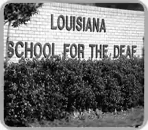 The Louisiana School for the Deaf is a state school for deaf and hard-of-hearing students in Louisiana, located in Baton Rouge, the state capital. It was established in 1852 as a joint school for blind students. In 1860, its first purpose-built facility was completed and admired as an elegant monument to philanthropy. The schools were divided in 1898, and in 1908, Louisiana School for the Deaf was renamed.