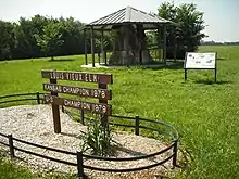 About three miles east of Louisville was the Vermillion Crossing of the Oregon Trail operated by Louis Vieux. Vieux is buried in the Vieux Family Cemetery on top of a hill. Nearby, on the banks of the river, is a cholera cemetery from 1849, which is estimated to contain at least fifty graves, although only two stones — both native sandstones — remain. The Louis Vieux Elm Tree is across the river and is estimated to be over 300 years old. The tree had been afflicted with Dutch elm disease, a lightning strike and vandalism and efforts were taken to protect and shelter the tree's stump. In August 2011, the stump was destroyed by fire.[6] Near the tree are the graves of seven unknown soldiers.