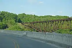 In 1888, the Louisville Southern also began a spur from Lawrenceburg to Versailles and Lexington. It then purchased the Versailles and Midway and initiated service to Georgetown. The line to Lexington crossed the Kentucky River at Tyrone by means of the 1,625-foot (495 m) Young's High Bridge and initiated service in October 1889.[1]
