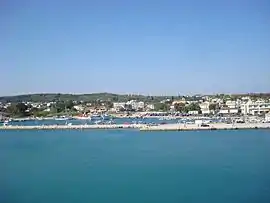 Kastro-Kyllini (Greek: Κάστρο-Κυλλήνη) is a former municipality in Elis, West Greece, Greece. Since the 2011 local government reform it is part of the municipality Andravida-Kyllini, of which it is a municipal unit.[2] The municipal unit has an area of 49.322 km2.[3] The population was 3,622 in 2011. The municipality Kastro-Kyllini was created in 1999 as part of the Kapodistrias reform from the formerly independent communities Kyllini, Kato Panagia, Kastro and Neochori, that became municipal districts. After the 2011 Kallikratis reform, these municipal districts became (dependent) communities. Its seat of administration was the small port town of Kyllini.