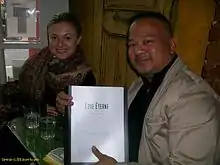 In 2013, with newer technology available, director Joseph Villapaz re-edited the film's scenes from scratch, and fixed the sound quality flaws from the previous release. A new opening scene was completed which contains the voice of Troiano (portrayed by Henry Martinez), the deceased fiancé. The text boxes which originally garnered negative reviews was also removed. Villapaz also added new music.[9] The short was submitted to film festivals with the title LOVE ETERNE mourning and became an Official Selection at the Wizard World Film Festival in Portland.[10][11] The Bare Bones International Film Festival screened LOVE ETERNE mourning on April 5, 2014.[12][13][14][15] [16] It won the award for Best Family Dramedy Micro Short on April 13, 2014.[17][18]