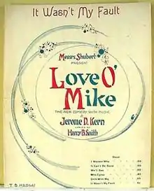 Love O' Mike is a musical comedy in two acts and a prologue with book by Thomas Sydney, lyrics by Harry B. Smith, and music by Jerome Kern. The show was produced by Elisabeth Marbury and Lee Shubert at the Shubert Theatre, and opened January 15, 1917.[1]