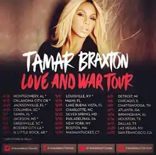 The Love and War Tour is debut concert tour by American recording artist Tamar Braxton. The tour supports Braxton's second studio album, Love And War (2013). The two-month tour started on May 16, playing 20 shows in North America.[1]