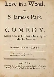 Love in a Wood; Or, St James's Park is a 1671 comedy play by the English writer William Wycherley. His debut play, it was first staged at the Theatre Royal, Drury Lane by the King's Company.