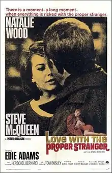 Love with the Proper Stranger is a 1963 American romantic comedy-drama film made by Pakula-Mulligan Productions and Boardwalk Productions and released by Paramount Pictures. It was directed by Robert Mulligan and produced by Alan J. Pakula from a screenplay by Arnold Schulman.